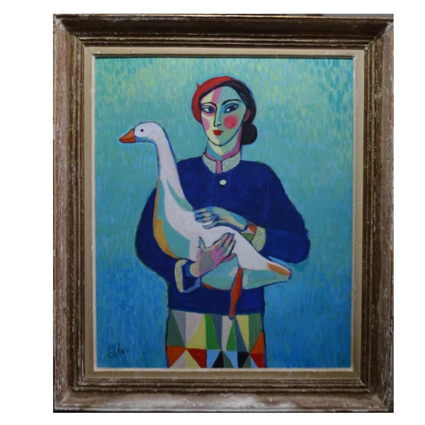 Large, 1985 Painting, 'Female Nude,' Jean Langlois (1923-2014)
