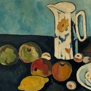 Mid-century, French Still Life, depicting apples and a jug, in the manner of Cezanne.