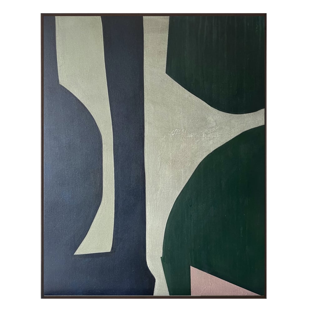Acrylic on linen canvas. Beautiful, 'rain on concrete,' textures in this striking abstract.