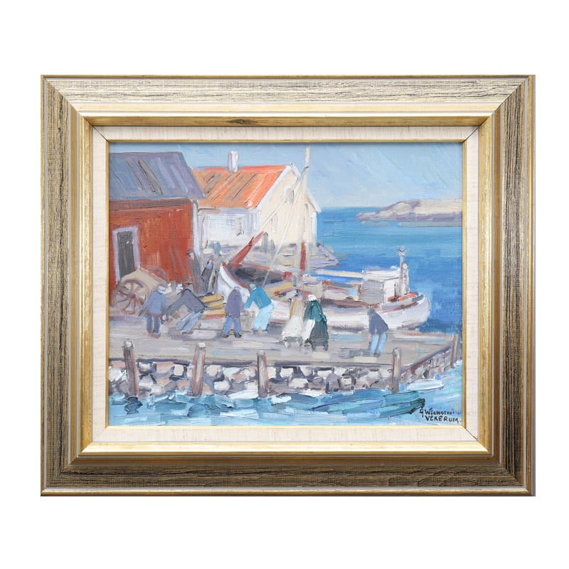 Swedish oil painting 'Quayside,' Ake Wickstrom