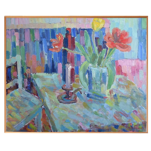 1979, Large Still Life, 'Red and Yellow Tulips.'